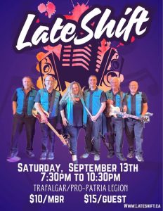 —Sept 10 Trafalgar/ProPats (Gorge Legion) dance 7:30-10:30